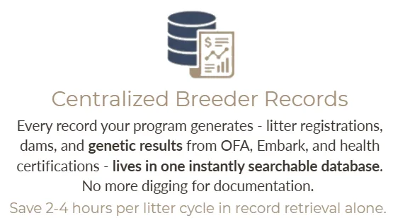 Litter records. Buyer communications. Contracts. Health testing. Automated follow-ups. All-in-one platform built by a breeder who has been exactly where you are.