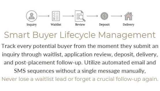 No tech background required. No generic CRM that doesn't understand what a litter is. Just a system that works as hard as you do.